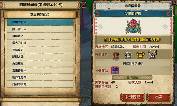01 喵喵异闻录喵喵异闻录是《怪物猎人OL》原创的全新游戏模式