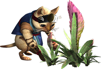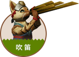 吹笛:艾露猫能够依靠音乐平息猎人的伤害,帮助猎人恢复体力,或者消除毒状态,甚至提升攻击与防御能力。